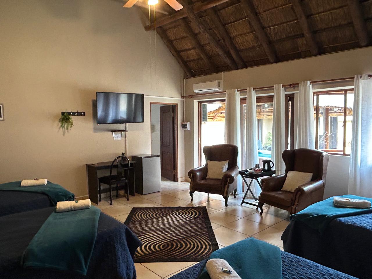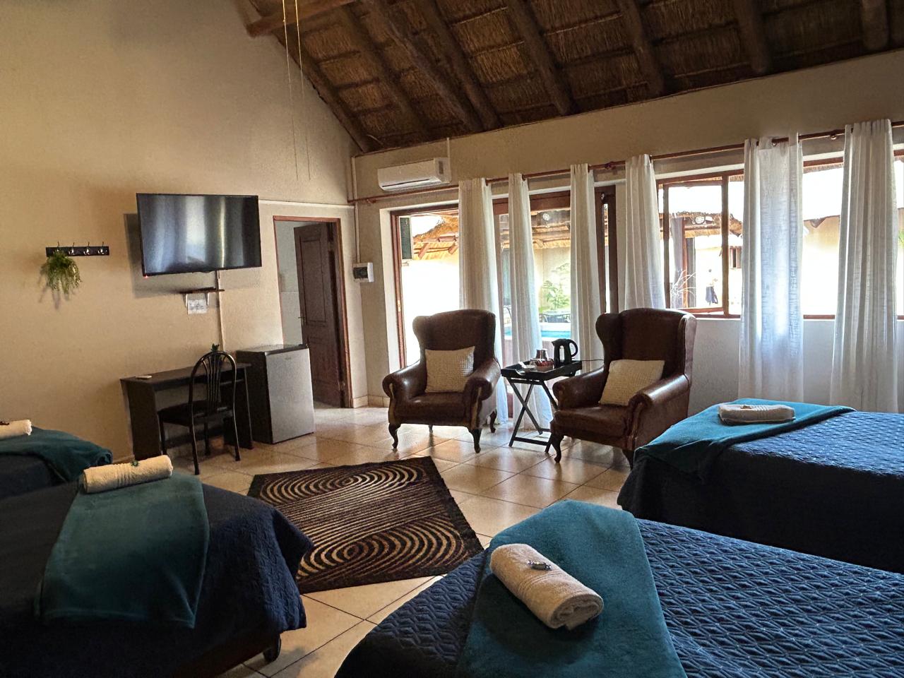 Guests can relax in our two communal lounges or enjoy our large entertainment area that includes a swimming pool and jacuzzi—ideal for team-building activities like golf challenges. We also offer ample braai facilities and a dining area, perfect for intimate gatherings.